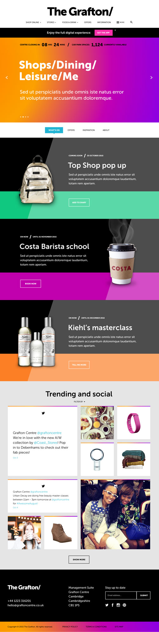 Groovy pitch web visual designed for the Grafton shopping centre whilst working at 3mil. It was nice to throw some colour at it for a change, as it seems that at the moment most of my visuals are white and minimal. Far out man.